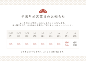 誠に勝手ながら、下記日程を冬季休業とさせていただきます。
